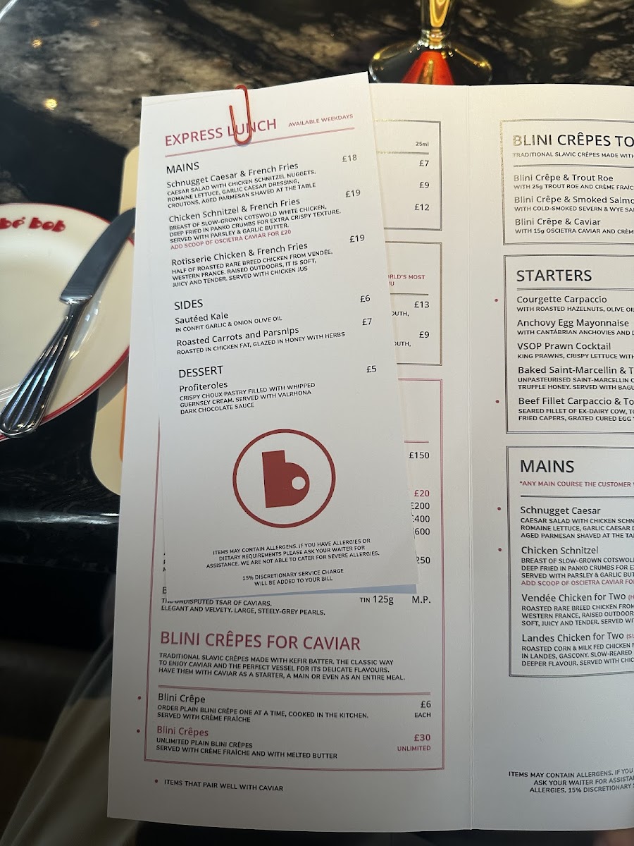 “ I loved bebe Bob! Such a nice environment for a slightly casual setting than Bob Bob Ricard. We had the schnitzel and the roast chicken. Schnitzel was ok but the roast was so good! I also really e joyed my chicken Negroni sounds wild but it was unique cocktail experience. Service was also great! ”